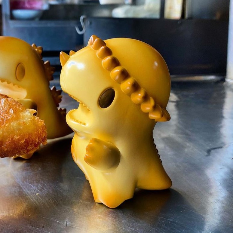 This Dino is toasted to perfection and yummy to eat! Get ready to toast up your collection with the Ziqi Wu Toasted PacDINO! This fun and quirky figure brings together the playful charm of Pac-Man and the prehistoric delight of dinosaurs. With its toasty colors and unique design, Toasted PacDINO is perfect for adding a bit of warmth and whimsy to your display. Its charmingly toasted finish and creative concept are sure to delight. Don’t miss out on this deliciously fun collectible!